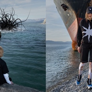 Коллаборация Волчок х Сила ветра. Море и морское дело всегда были сопряжены с загадками и мифами, породившими целые пласты культуры у разных народов. Основной сюжет коллекции разворачивается в графике художника Леонида Шатунова: «Меня привлекла идея изобразить мистические сюжеты, которые погружали бы на мгновение в древнюю сказку. В истории фольклора абсолютно разных народов можно найти сказания о морских чудовищах, якобы угрожающих мореплавателю. И даже если сегодня понимать эти легенды стоит иносказательно, всем понятно, что в море всегда отправлялись только самые смелые». Съемка прошла на базе Силы ветра и на побережье в Геленджике. Заговорщически тихий солнечный день, безлюдные скалы, заброшенный корабль на фоне величественных сосен – все это навеяло настроение странной фантастики Лавкрафта. В его рассказах фигурирует мифическое чудовище Ктулху, спящее в затонувшем городе и проникающее в сознание людей во снах.