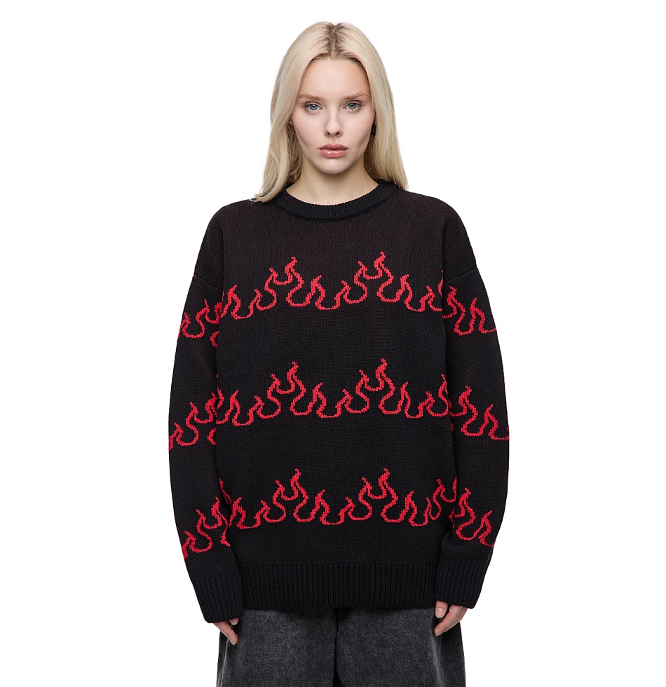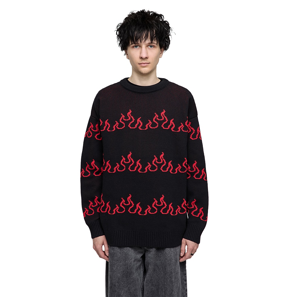 Джемпер машинной вязки. Круглый вырез под горло, подол и манжеты в рубчик, заниженные плечи, свободный крой.