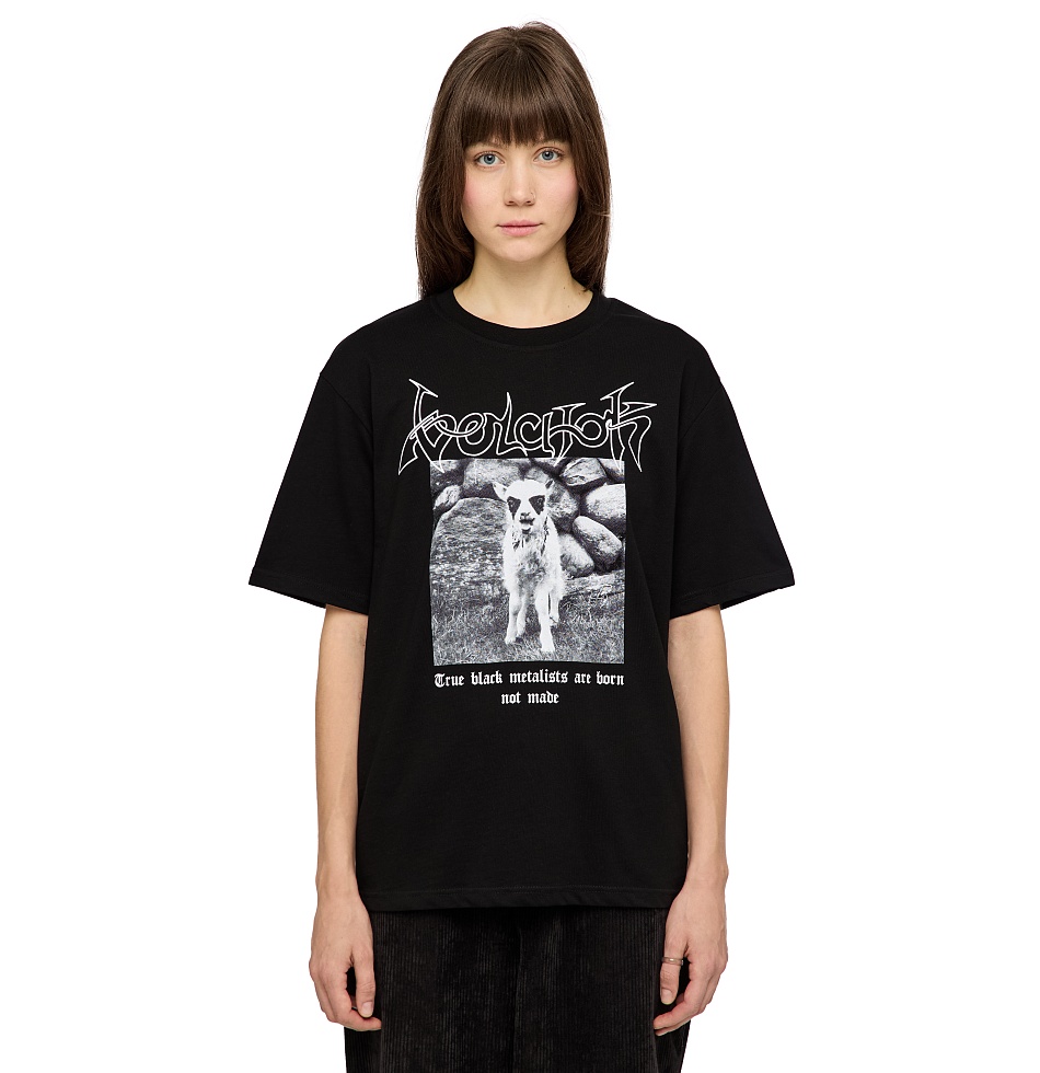 Футболка свободного кроя с круглым вырезом, горловина обработана окантовкой в рубчик, приспущенная линия плеча, втачной рукав, принт шелкография. Плотность: 180 гр/м2. На Алисе – размер M, ее рост 180 см. На Артёме – размер XXL, его рост 198 см.