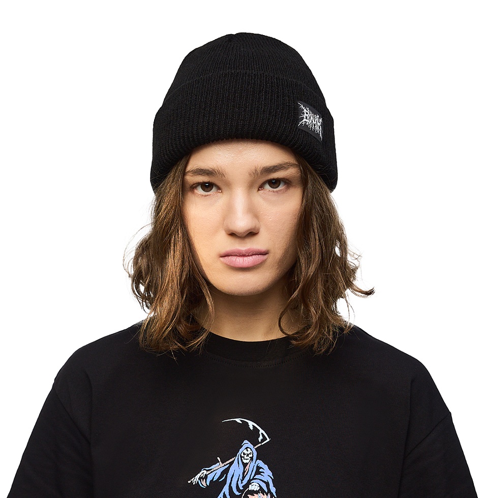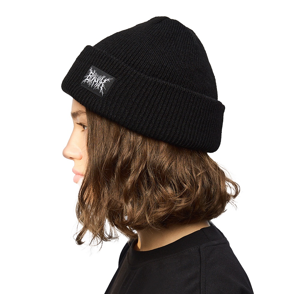 Шапка с жаккардовой нашивкой на отвороте. Один размер.