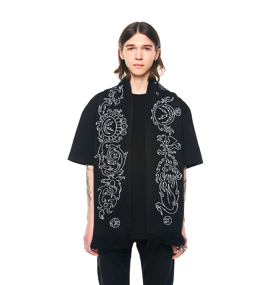Классический шарф с бахромой и контрастным узором с обеих сторон. Машинная вязка.