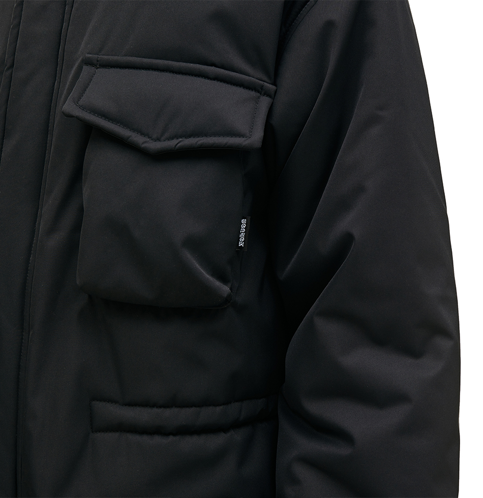 Куртка с накладными карманами. Воротник-стойка, потайная застежка на молнии и на кнопках, карманы с клапанами, кулиска с фиксаторами на талии и в подоле, манжеты в рубчик, флажок с логотипом бренда в шве кармана. Утеплитель Alpalux защищает от холода и ветра в мороз до -25 градусов. На Иване – размер L, его рост 187 см.