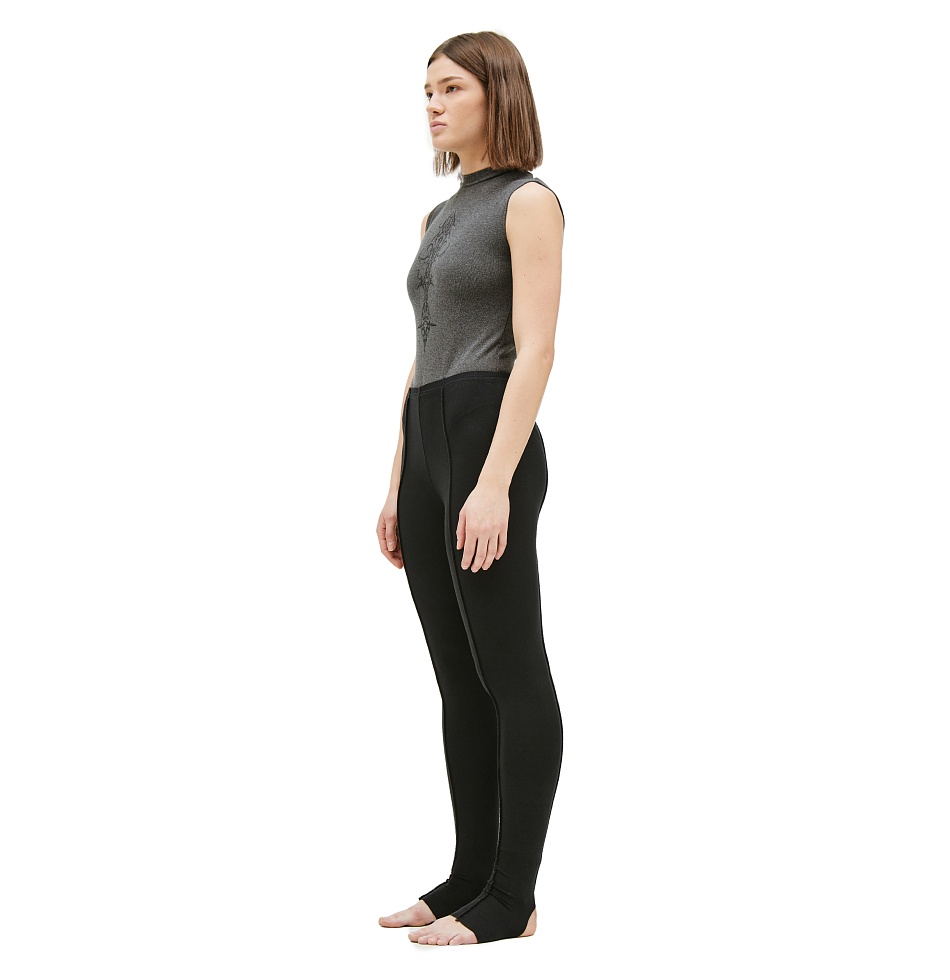 Леггинсы с высокой посадкой со штрипками. Пояс на резинке. Декоративные вертикальные строчки спереди и сзади. На Рите – размер S, ее рост 167 см.