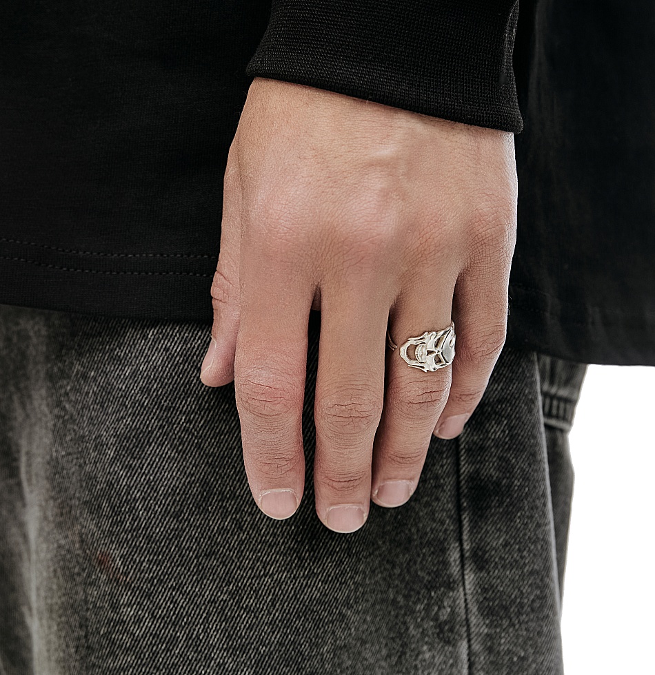 Незамкнутое кольцо с резным узором по всей окружности. Матовая полировка.