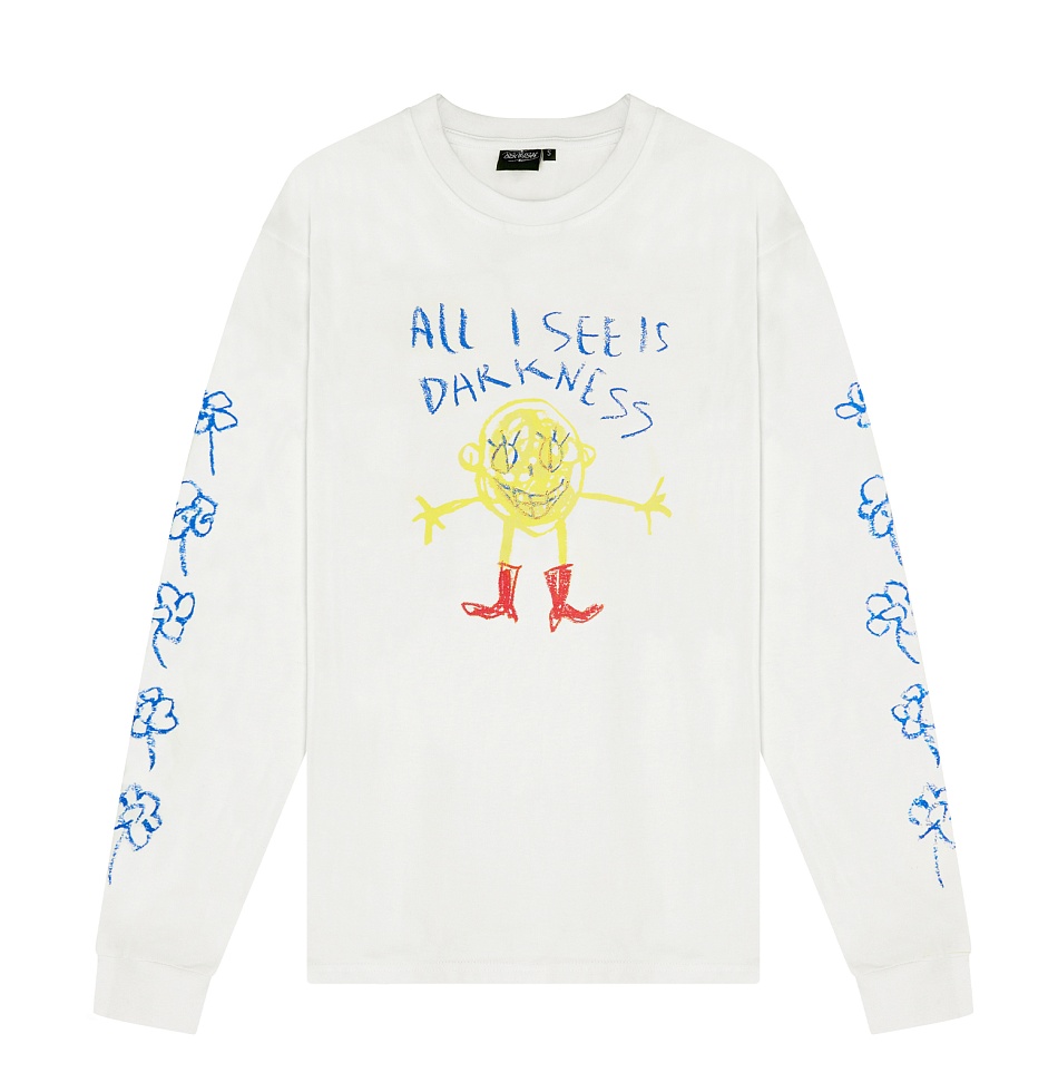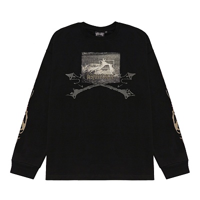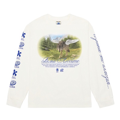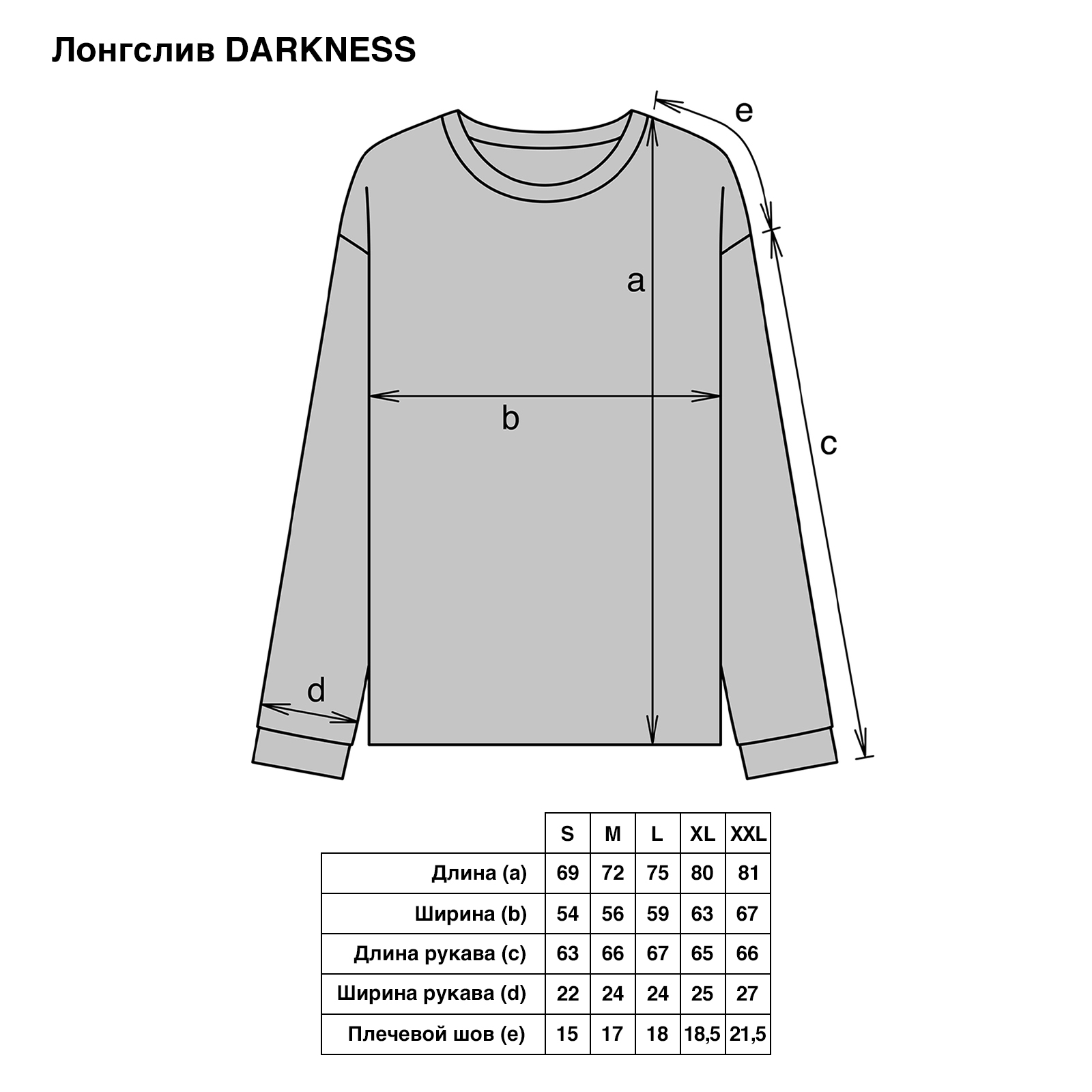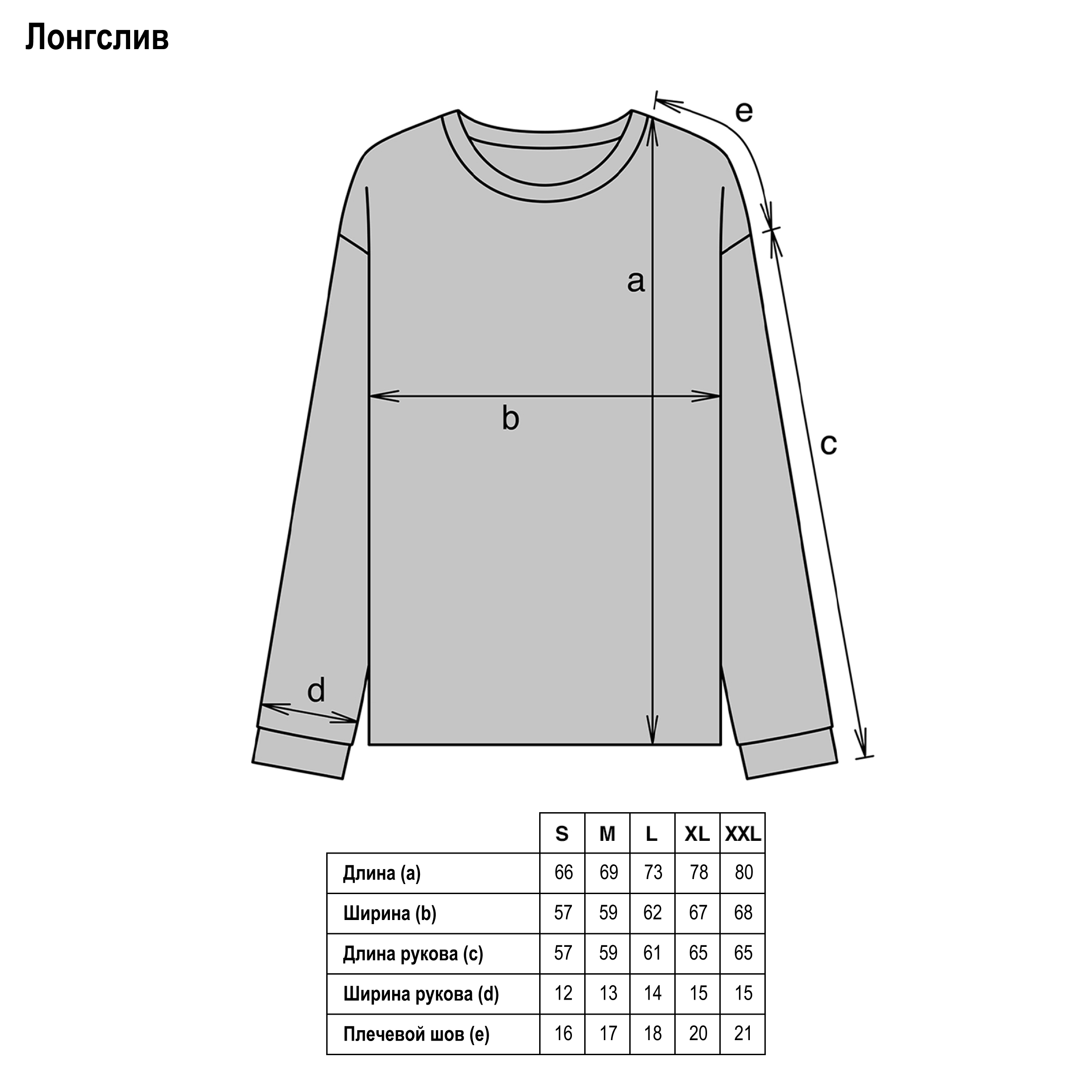 Лонгслив свободного кроя с круглым вырезом, приспущенная линия плеч, втачной рукав, принт шелкография. Плотность: 220 гр/м2. На Даше – размер S, ее рост 166 см. На Диме – размер XL, его рост 188 см.