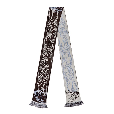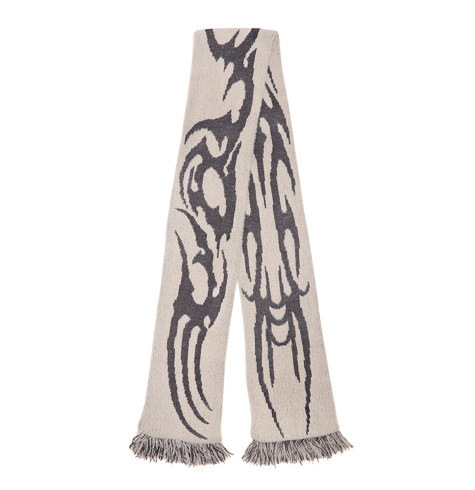 Классический шарф с бахромой и контрастным узором с обеих сторон. Машинная вязка с использованием пушистой пряжи.