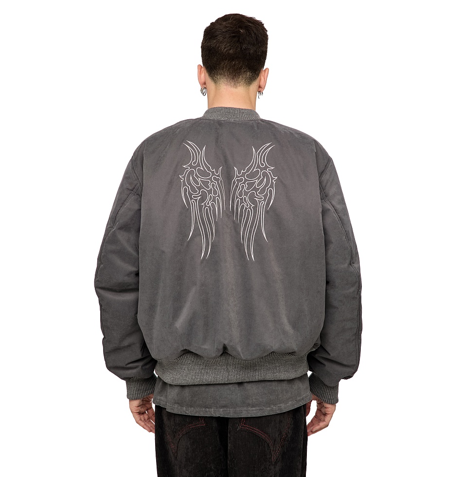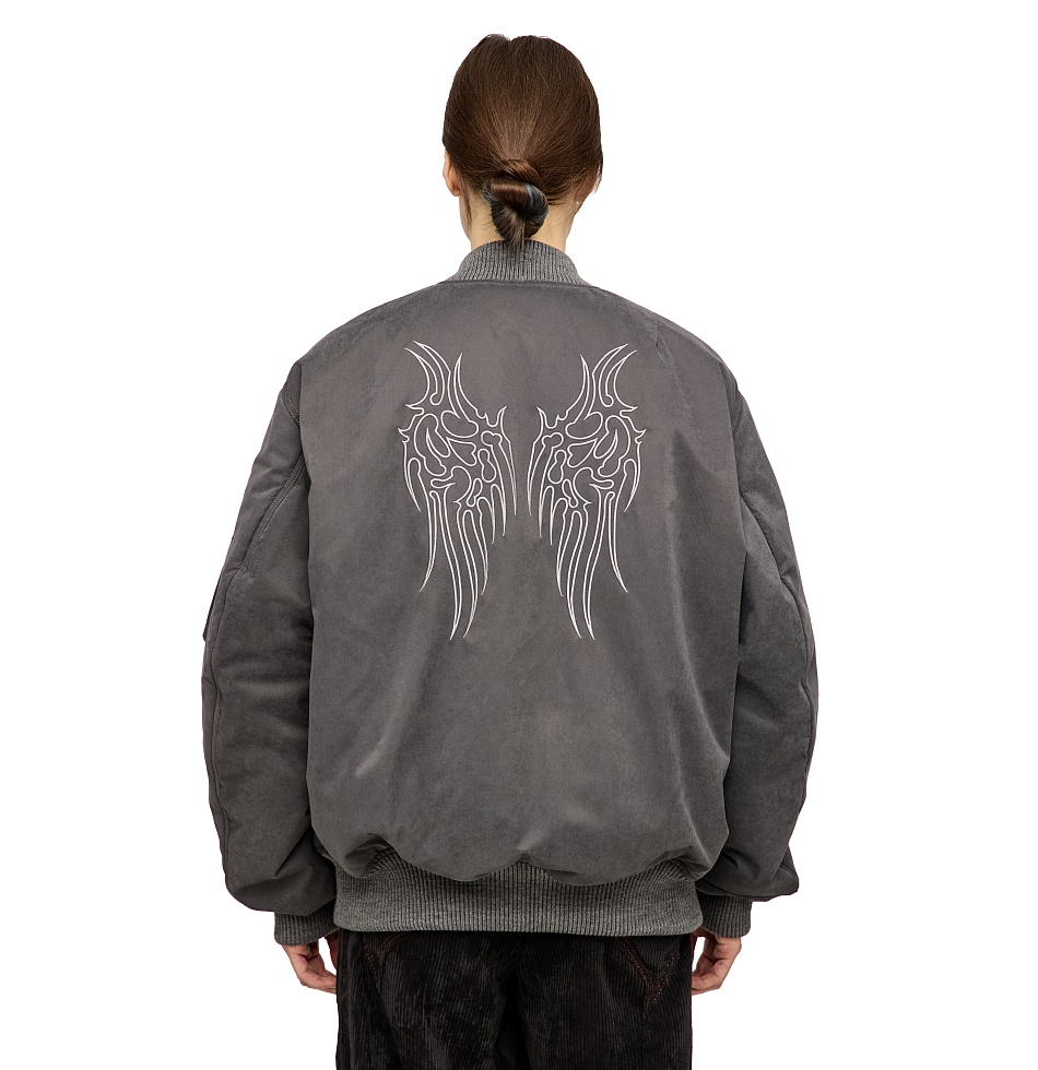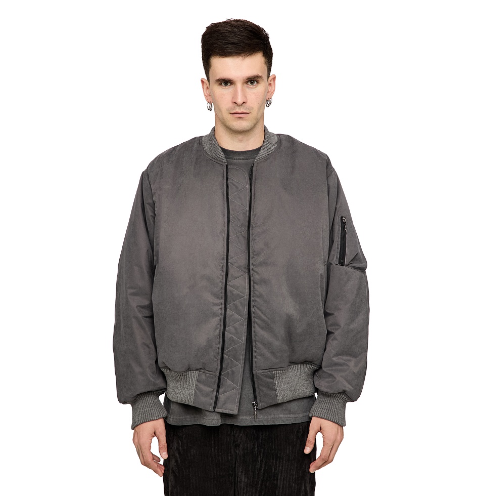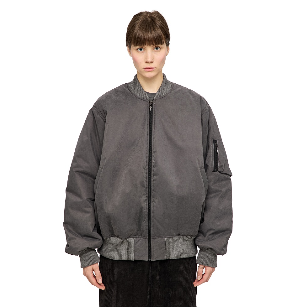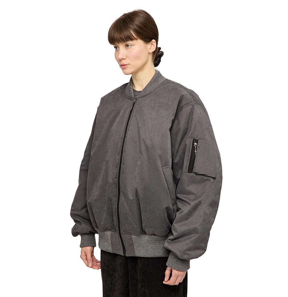 Демисезонный бомбер из мембранной ткани и утеплителем alpolux. Застежка на молнии, манжеты и подол на резинке, прорезные карманы по бокам, маленький карман на молнии на рукаве, внутренний карман на молнии, вышивка на спине. На Алисе – размер M, ее рост 180 см. На Артёме – размер XL, его рост 198 см.
