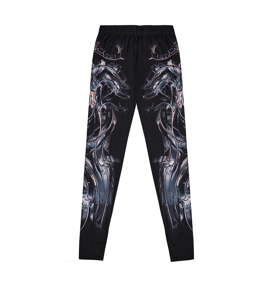 Леггинсы из эластичной ткани с абстрактным принтом (сублимация). На Алисе – размер M, ее рост 180 см. На Артёме – размер L, его рост 198 см.