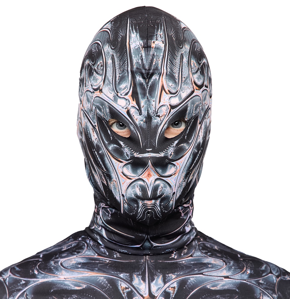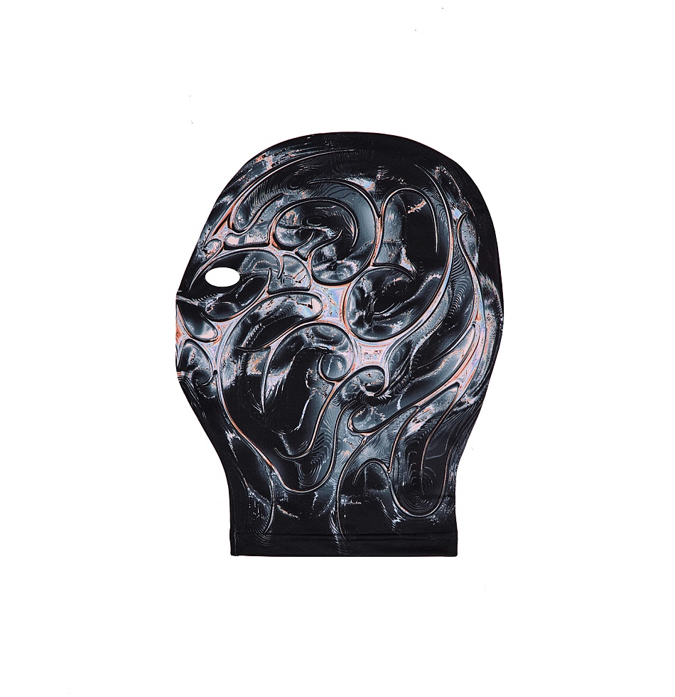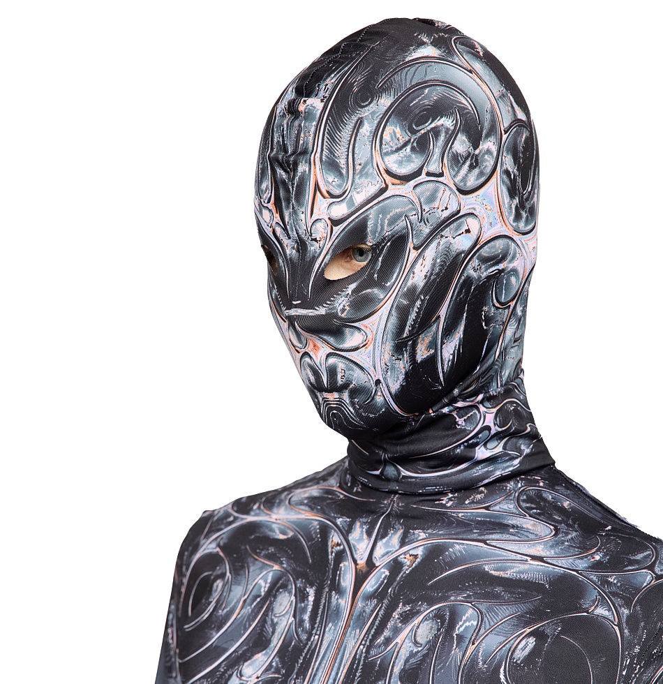 Балаклава из эластичной ткани с абстрактным принтом (сублимация). На Алисе – размер S. На Артёме – размер L.