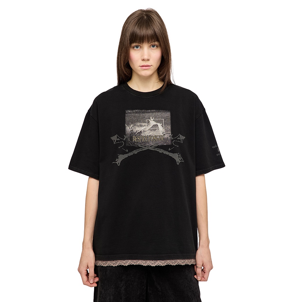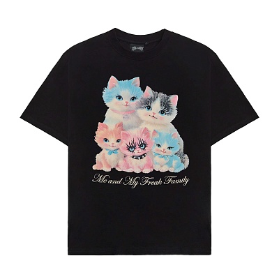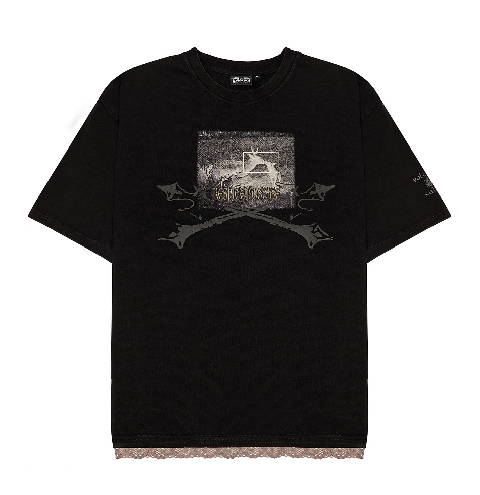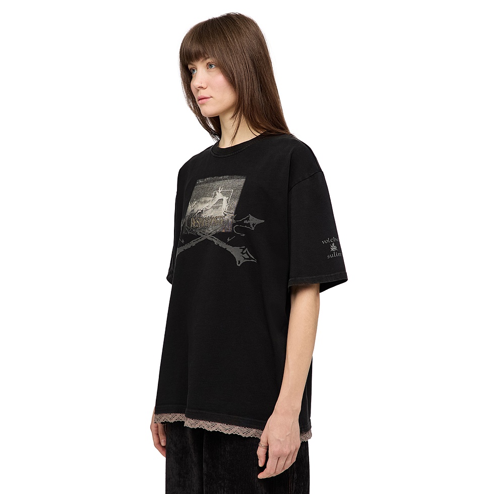 Футболка свободного кроя с круглым вырезом, горловина обработана окантовкой в рубчик, приспущенная линия плеча, втачной рукав, принт шелкография. На Алисе – размер L, ее рост 180 см. На Артёме – размер XXL, его рост 198 см.