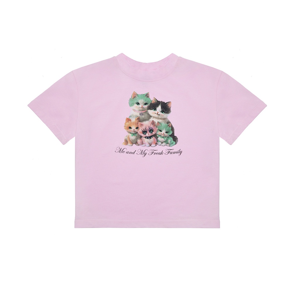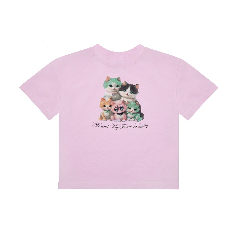 Обтягивающий кроп-топ приталенного силуэта, втачной рукав, принт шелкография.