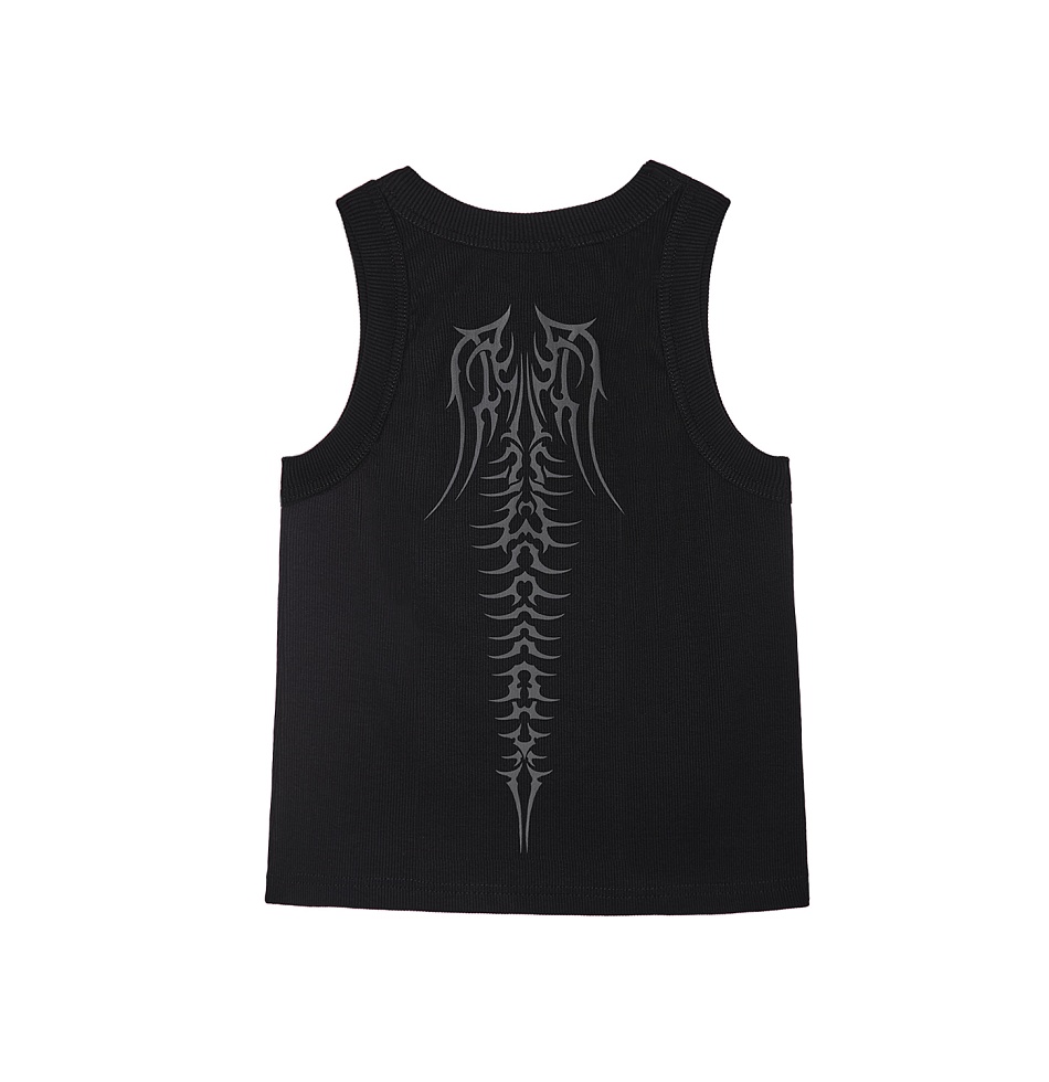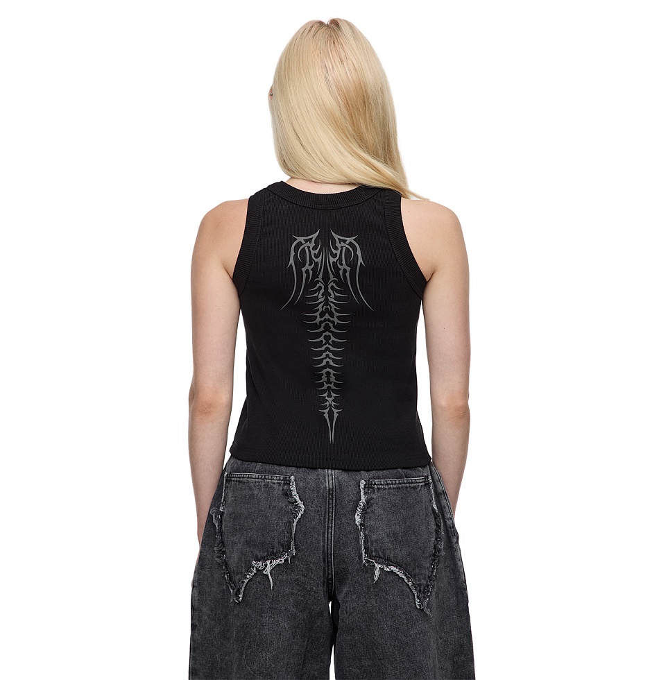 Обтягивающая майка с круглым вырезом из ткани в рубчик, обработана окантовкой из основной ткани, принт шелкография.