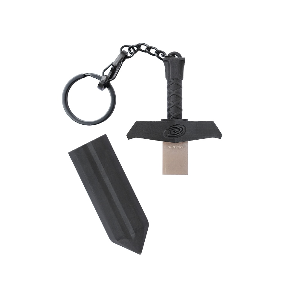 Напечатанный на 3D принтере флеш-накопитель в виде меча из черной полимерной смолы. Фиксация рукоятки и лезвия меча на магнитах. Внутри флешка Kingston на 128гб. Оригинальная разработка, лимитированный дроп.