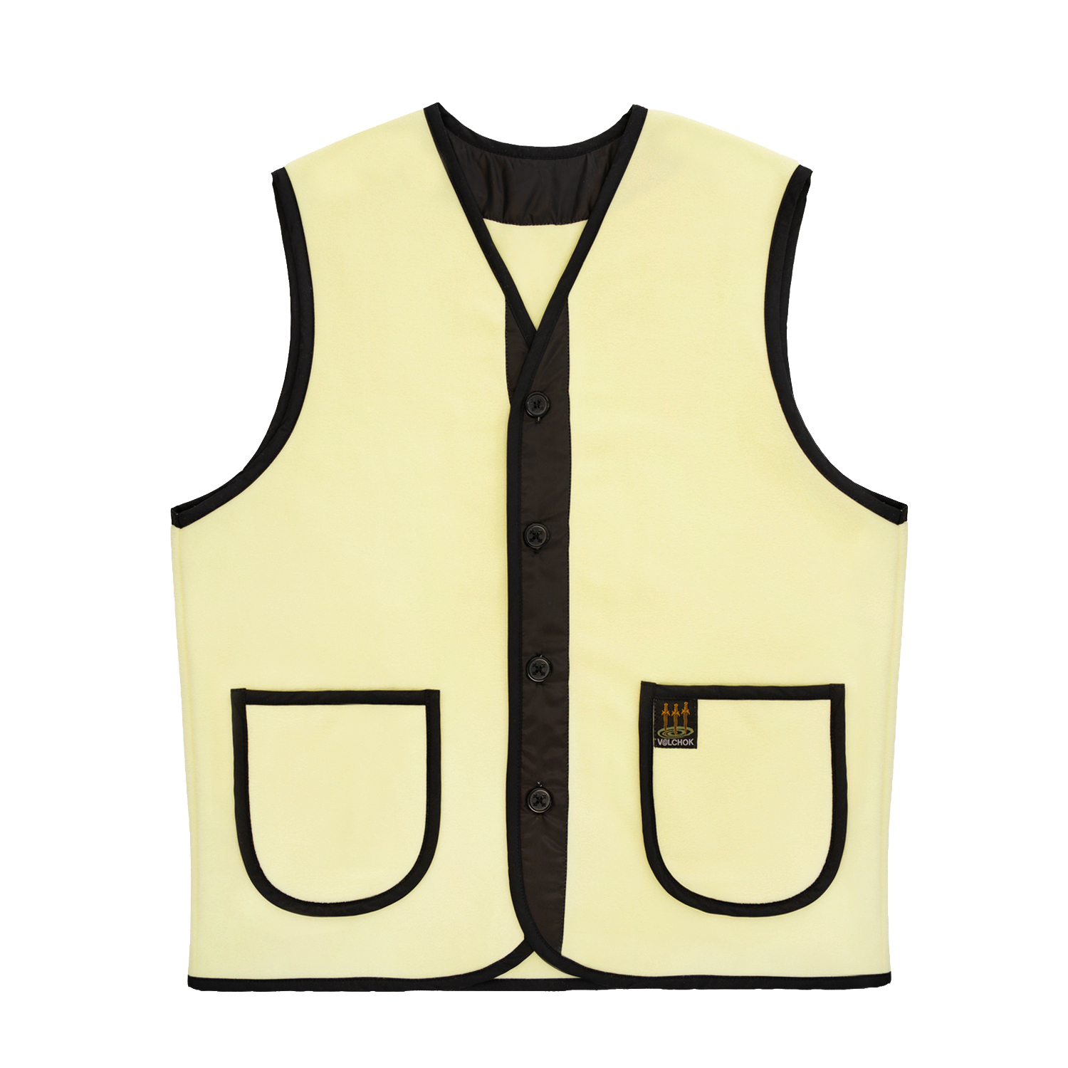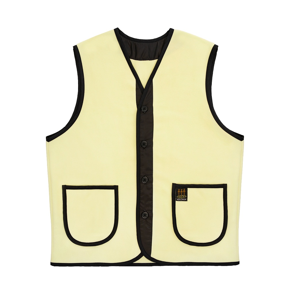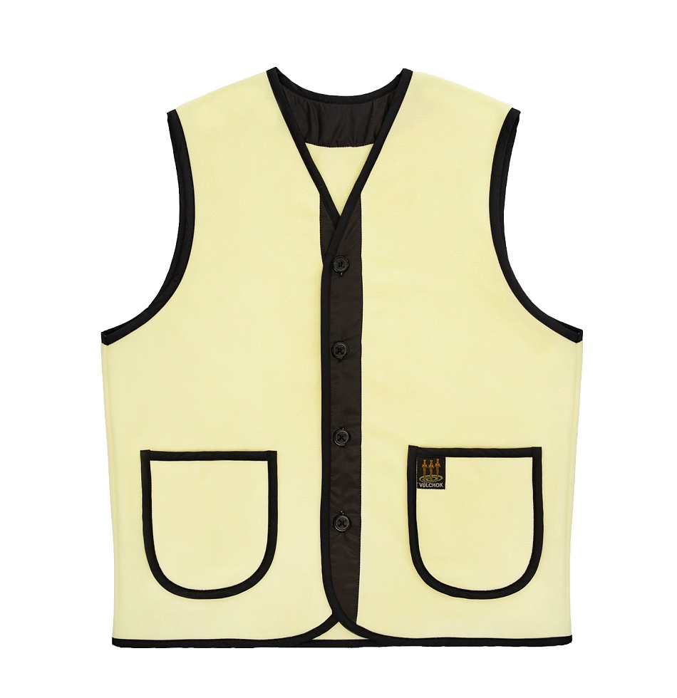 Жилет флисовый на пуговицах и двумя накладными карманами спереди.