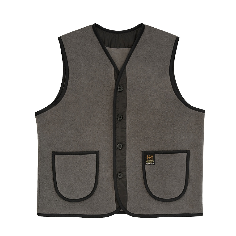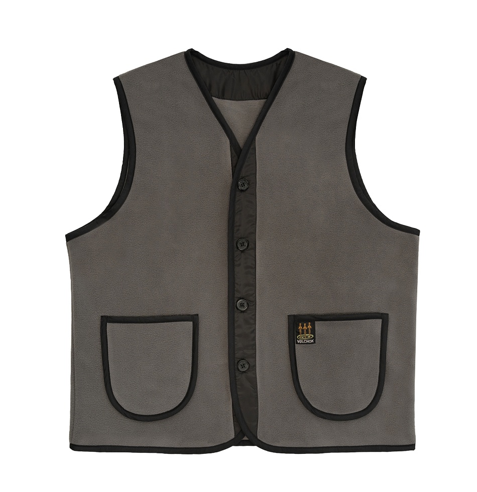 Жилет флисовый на пуговицах и двумя накладными карманами спереди.