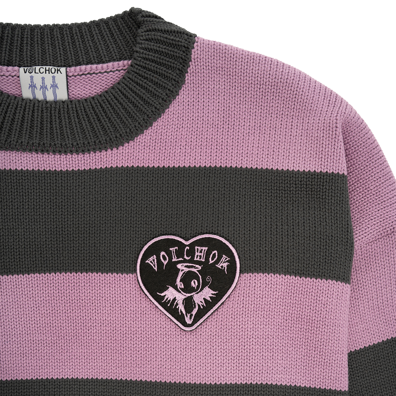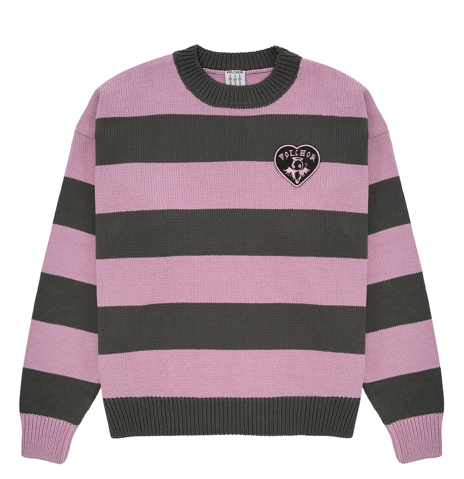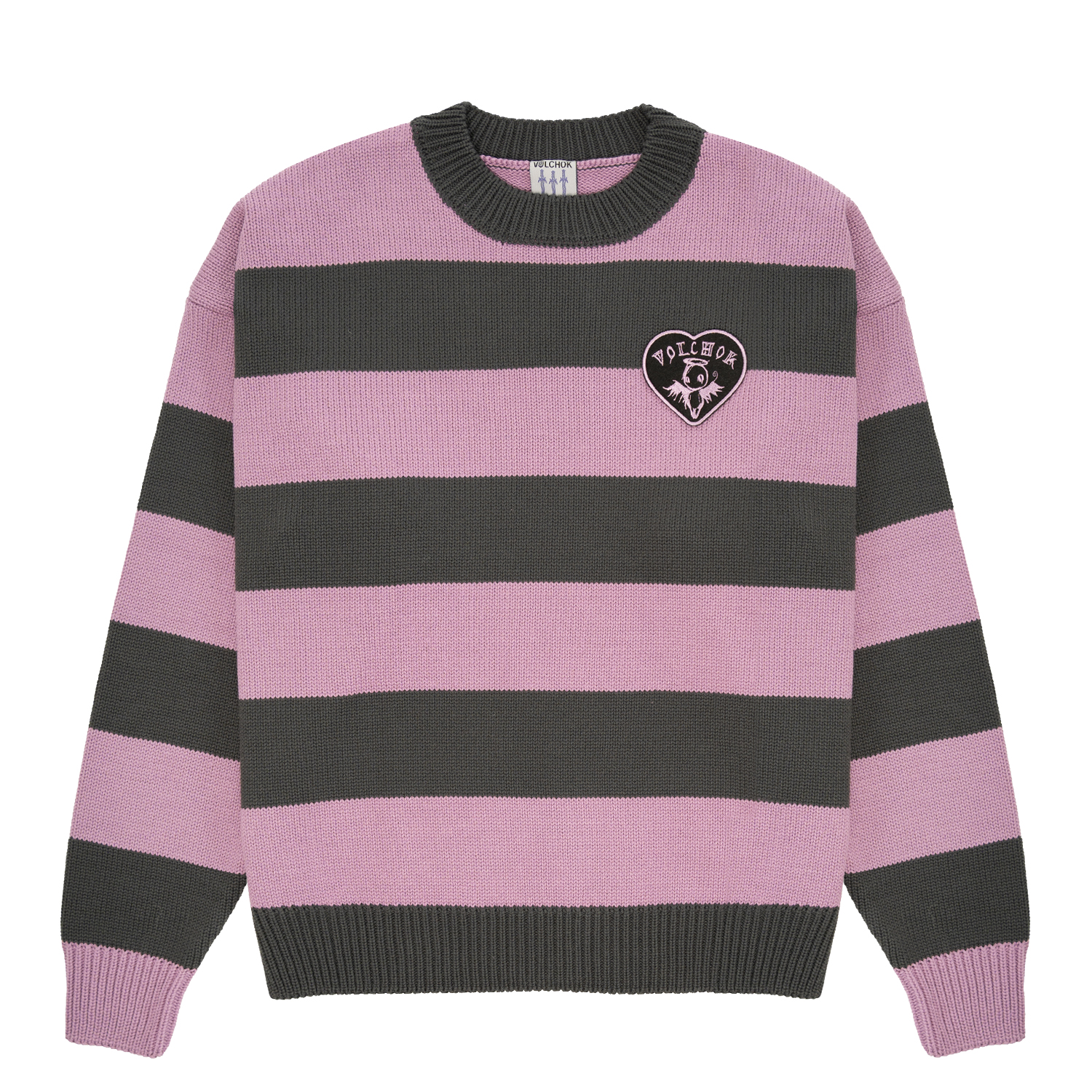 Удлиненный вязаный джемпер с нашивкой в виде сердца, свободный крой, спущенная линия плеча.